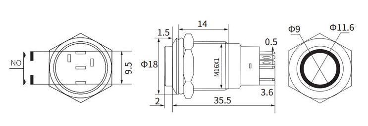| Lamp type | Dot or Ring illuminated,Power symbol,Custom text |