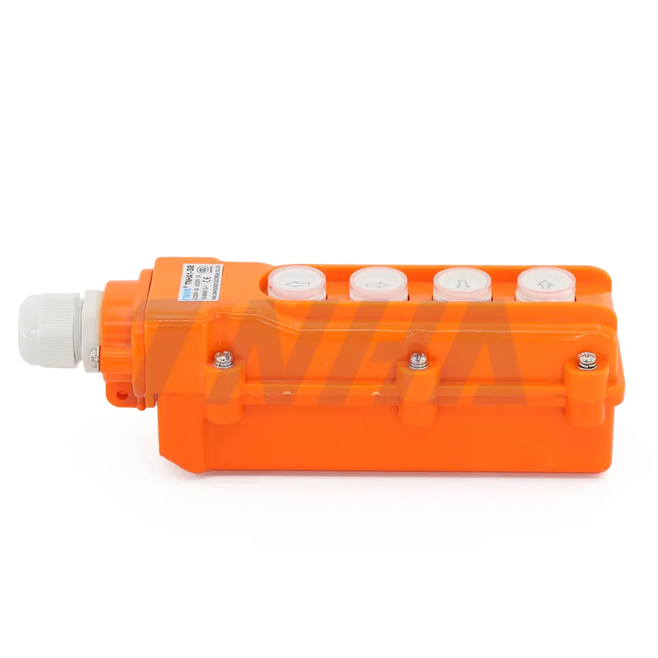 Equipped with rubber cable sheath and waterproof sealing strip, it has good dust-proof and rain-proof performance, so this product is especially suitable for open air, rain and snow, dusty environment and places with wet hands, such as electric hoist, The open-air material conveyor belt, remote control of electrical equipment in the construction industry.