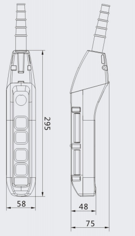 Equipped with rubber cable sheath and waterproof sealing strip, it has good (IP65) dust-proof and rain-proof performance, so this product is especially suitable for open air, rain and snow, dusty environment and places with wet hands, such as electric hoist, The open-air material conveyor belt, remote control of electrical equipment in the construction industry.
