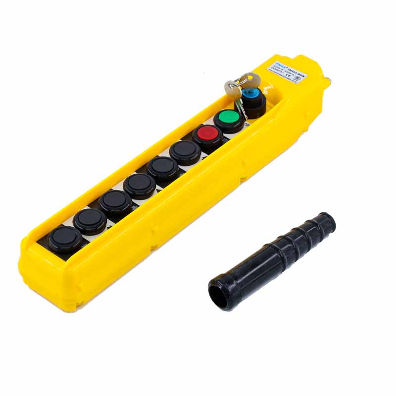 Equipped with rubber cable sheath and waterproof sealing strip, it has good (IP65) dust-proof and rain-proof performance, so this product is especially suitable for open air, rain and snow, dusty environment and places with wet hands, such as electric hoist, The open-air material conveyor belt, remote control of electrical equipment in the construction industry.