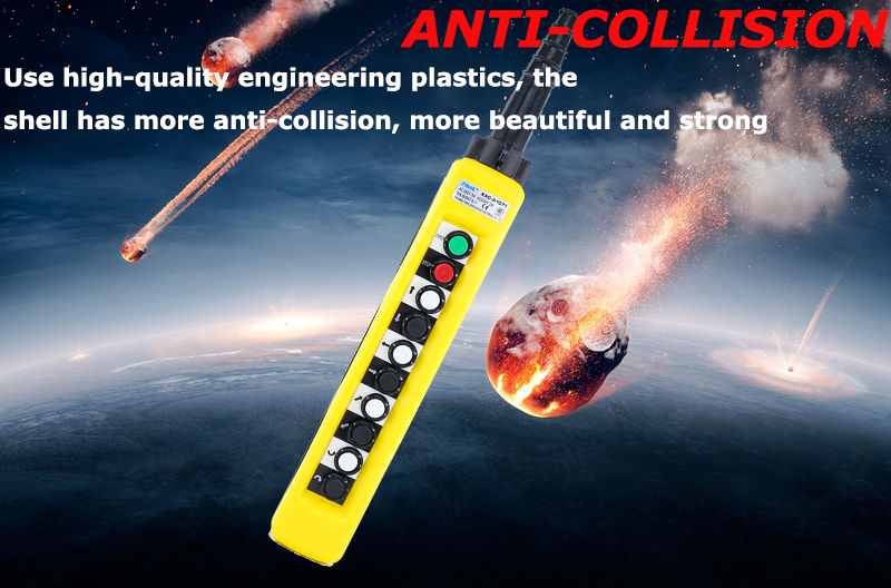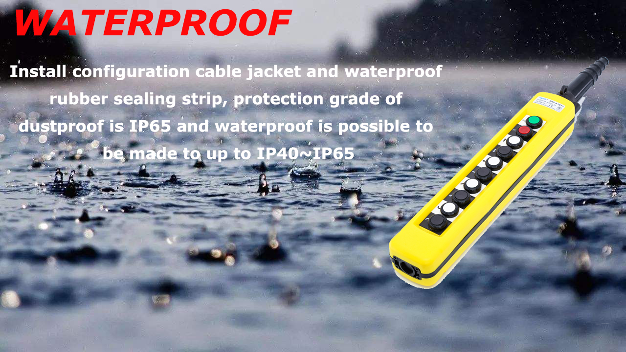 Equipped with rubber cable sheath and waterproof sealing strip, it has good (IP65) dust-proof and rain-proof performance, so this product is especially suitable for open air, rain and snow, dusty environment and places with wet hands, such as electric hoist, The open-air material conveyor belt, remote control of electrical equipment in the construction industry.